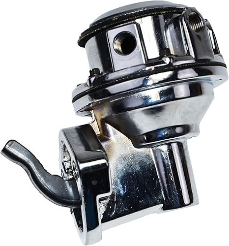 - Two-Valve Mechanical Fuel Pump – Made of heavy-duty aluminum housing material with premium chrome finish for consistent performance and reliability