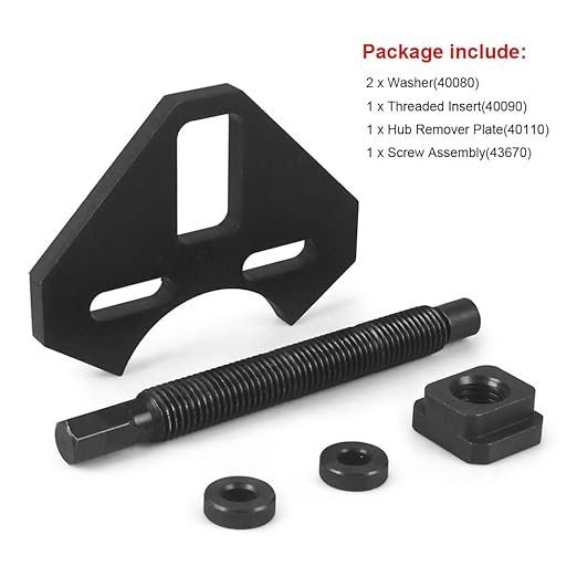 - 【Package Include】2 x Washer (40080), 1 x Threaded Insert (40090), 1 x Hub Remover Plate(40110), 1 x Screw Assembly (43670).