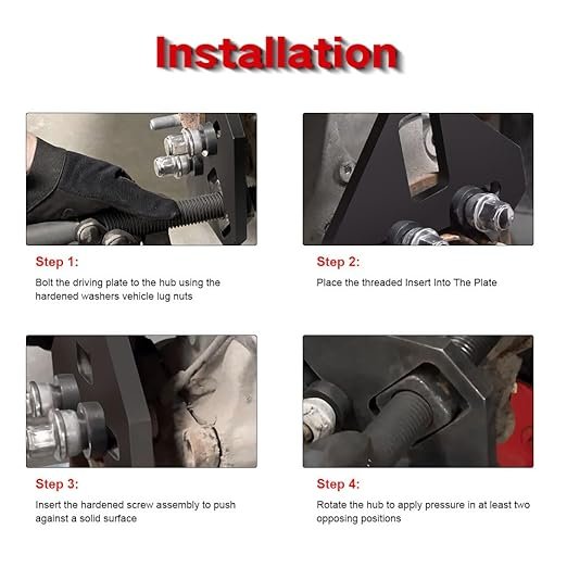 - 【Extension Function】Securing the drive plate to the hub with 2 washers & original lug nuts, then Insert the hardened threaded forcing screw to push against a solid surface makes it easy to remove frozen hubs without damaging other suspension components. The use method is convenient, disassembly saves time and effort, and improves your work efficiency.