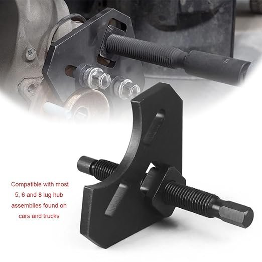 - 【Premium Materials】This hub remover tool is Made of high quality carbon steel.The 0.55\” thick steel drive plate is durable.High surface black coating, high strength, play an effective anti-corrosion and anti-wear effect.Hardened washer, hardened forced screw, high hardness and fracture prevention, safe and reliable and long life.
